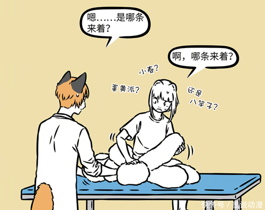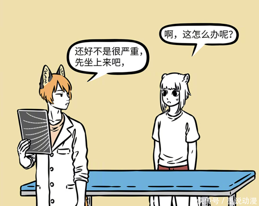 《非东谈主哉》第1128话更新,这一话是九月和敖烈去看大夫的故事。九月尾巴短命,大夫准备帮她打石膏,不外九月念念知谈是哪一条。至于敖烈,则是腰疼,大夫拍片之后,并莫得发现是哪个位置。敖烈的腰太长,我方也不知谈具体的位置。