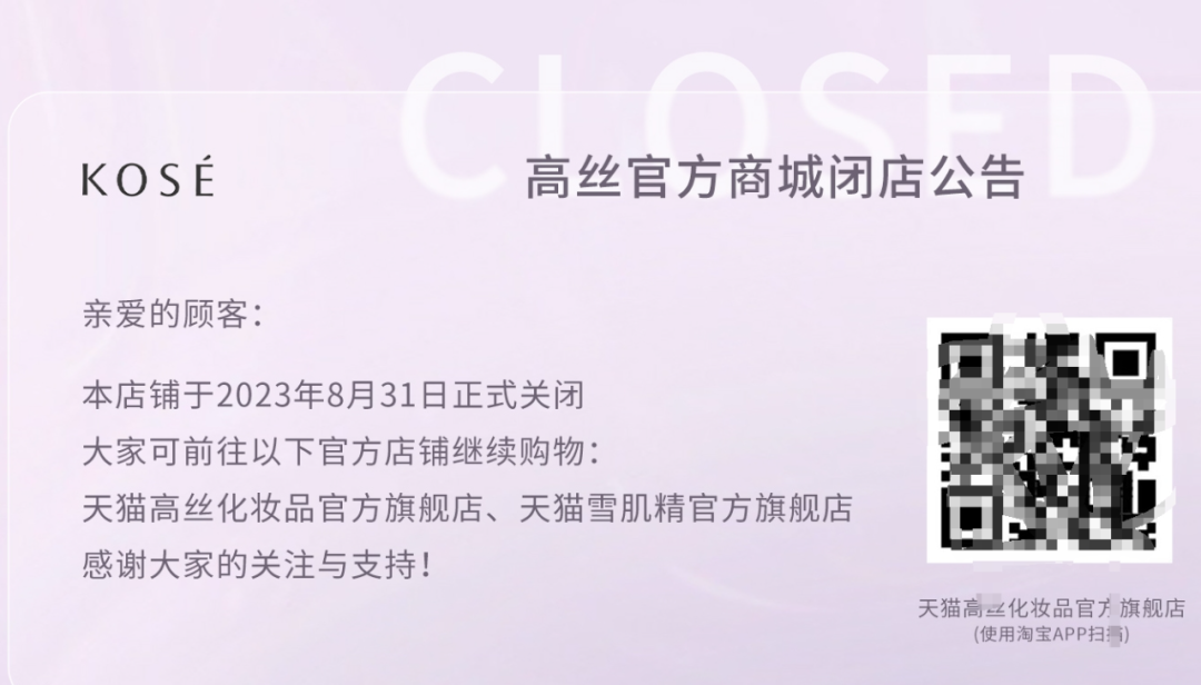 本体上,除了天猫旗舰店,高丝官方在线商城早在2023年8月31日如故关闭。