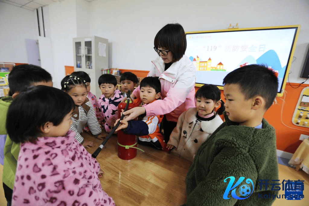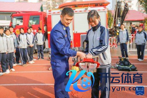 11月8日,消防员在江苏省泰州市九龙实验学校指导学生体验使用熄灭器(无东谈主机相片)。