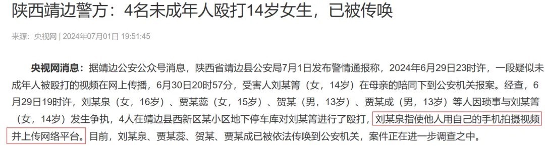 一些未成年东谈主殴打他东谈主后,会拍摄视频发到收集平台博取关注。