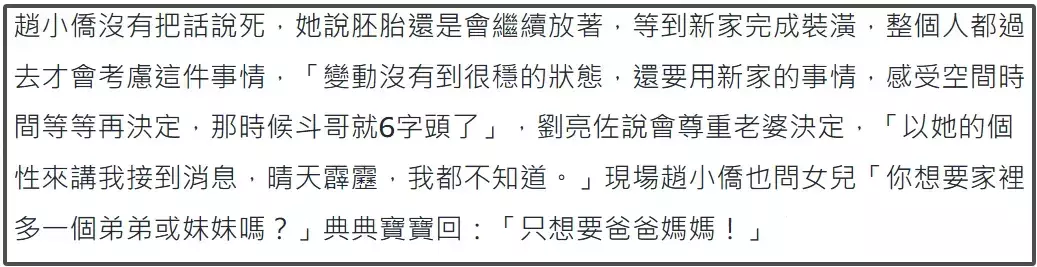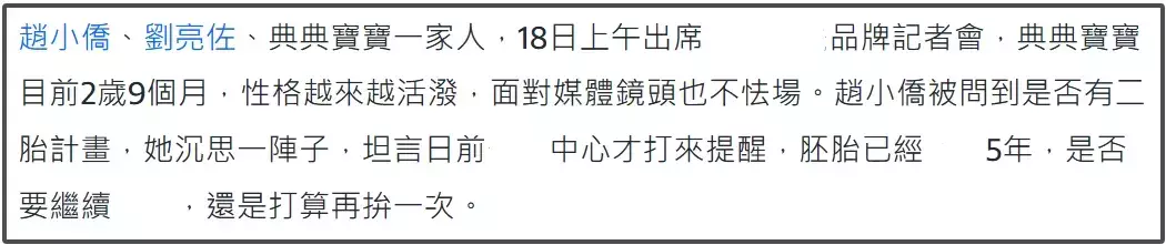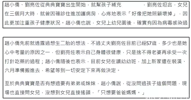 谁意想没过几年时刻,履历了生养之苦的赵小侨的确又萌发了生二胎的念头,并且就她和她老公刘亮佐躯壳景象看,莽撞率又要选定科技本事,那就意味着可能失败,到时候关于赵小侨的身心不免有所肆虐。