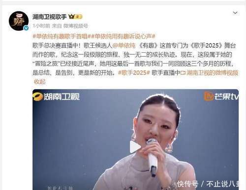 动作“歌王”的热点东谈主选,单依纯最终只取得了第三名,这让不少东谈主感到有些不测。她在赛后遴选采访时示意,我方来参加《歌手2025》的目的,是“让全球听到什么样的音乐,我有很强烈的,必须要抒发的祈望”。当被问及这扫数上作念过最不后悔的事情是什么时,她绝不夷犹地恢复是“来歌手!”天然未能夺冠,但单依纯的这份真诚和对音乐的正式,无疑感染了大齐不雅众。
