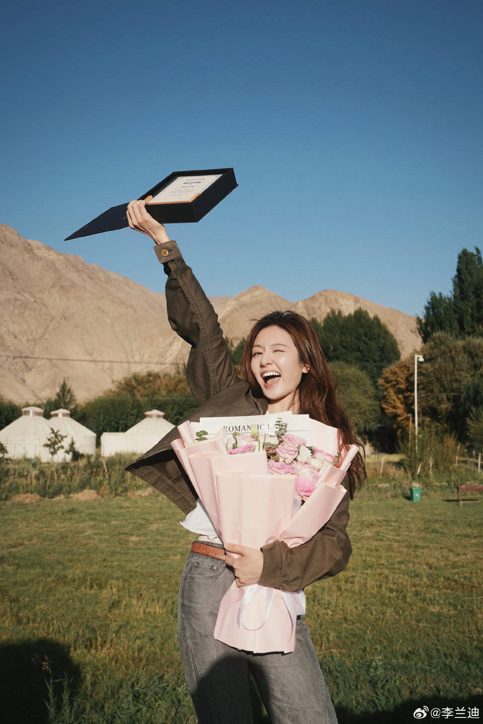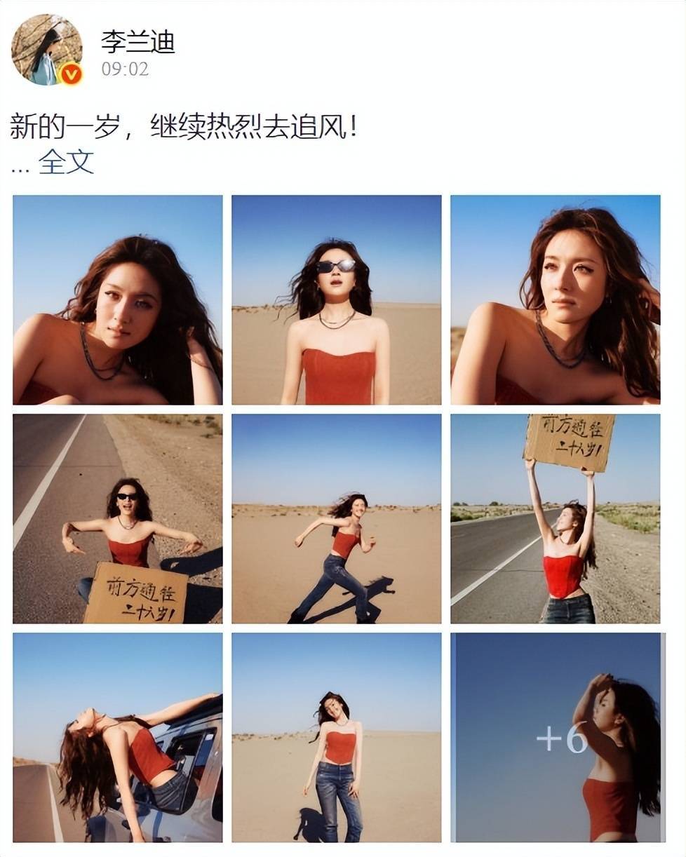 恰逢李兰迪的26岁寿辰,而李兰迪还在剧组拍戏,在喀什亦然十分的承诺,笑脸很甜,第一组好意思照是穿戴红色肚兜搭配着牛仔裤,躺着羊毛卷好意思出天空了,第二组好意思照则是和剧组的职责主谈主员全部合拍的,看得出来李兰迪有何等的承诺了,每一张都是笑脸满满。