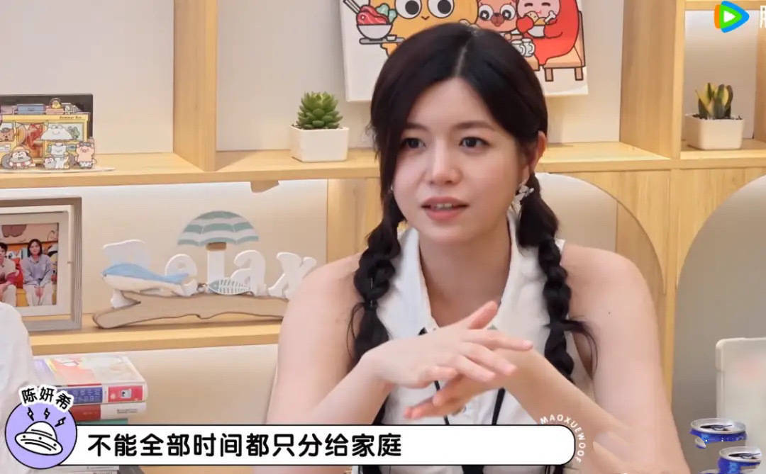 在综艺节目《毛雪汪》中,主握东说念主问到陈妍希和颖儿对适婚女性提议的时候,陈妍希当先启齿。她说“女性在婚配里要保握沉着的经济智商,学会爱我方,不要把全部技术干与到家庭中,无论什么时候,王人不成把我方丢了”。