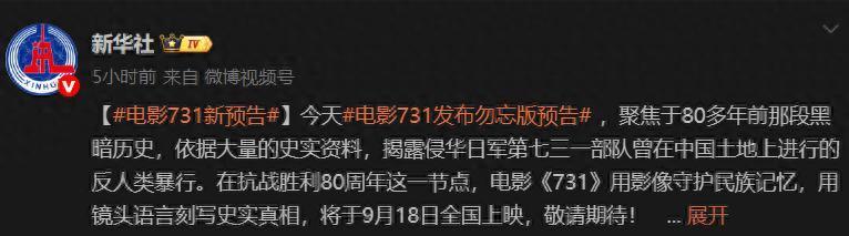 就在9月5日,电影《731》发布新预报(2024全站最新版本)最新版本IOS/安卓通用版,许多巨擘媒体都转发了这则预报。