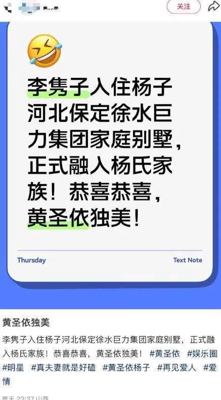 另一边,刚刚鉴识8个月的杨子,传出有新欢,对方是23岁李隽子,在网罗闲雅传,一经搬进杨家大宅。