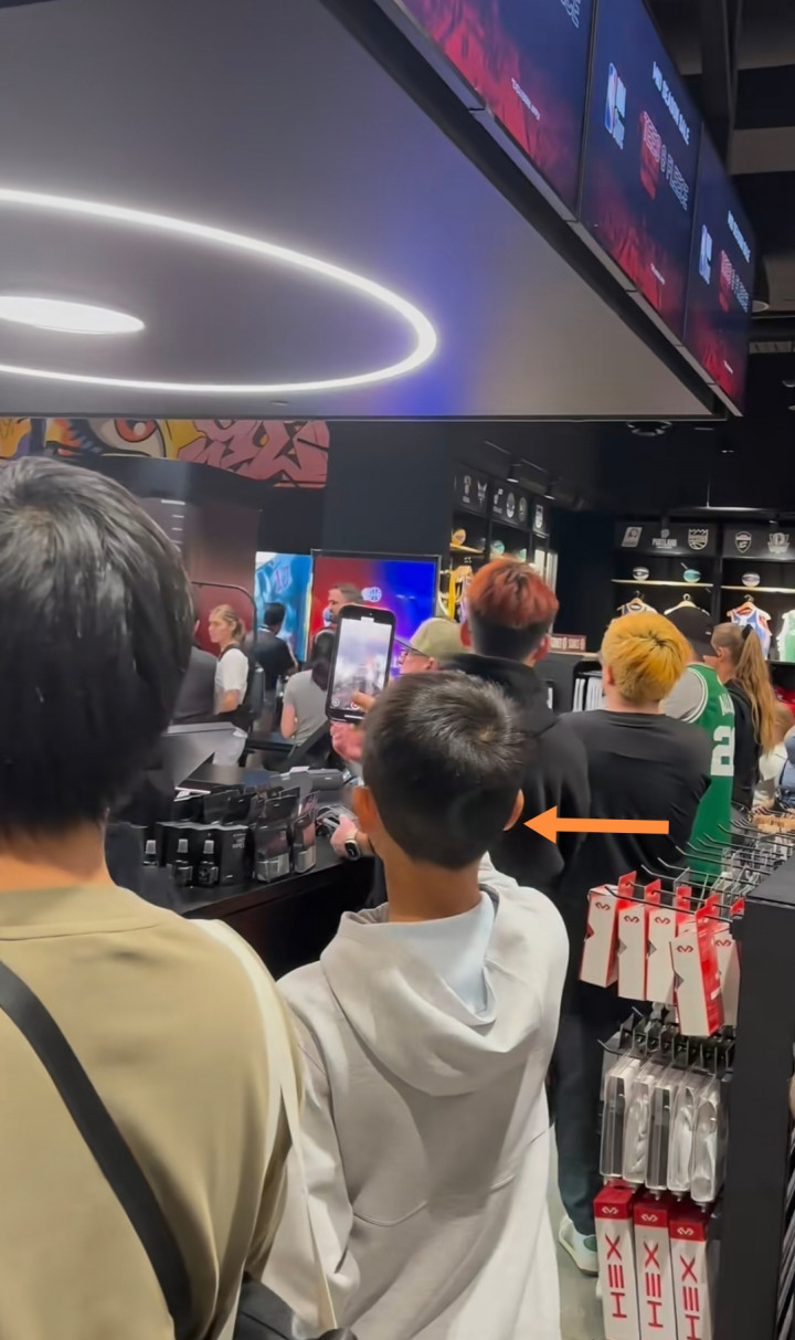 据网友共享的视频,Jasper伶仃失业打扮,白色上衣搭配灰色外衣和卡其色裤子,他穿梭在东谈主潮挤挤的店铺里,左看右看,还碰到了一个篮球明星,然后用手机拍下来。