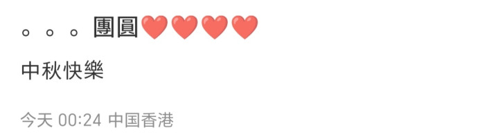 今天(10月6日),在中秋节到来之际,他和妻儿团员上了。凌晨24分,他发文宣告了这一高兴音信——“团圆”,背面加上了四个红色的爱心面容包,背面是节日祝愿“中秋情愿”。从字里行间就能感受到他和家东谈主团员的野蛮神志。