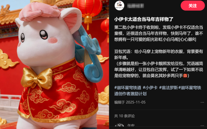 而小伊卡能见效当选崩铁马年吉利物,十足离不开玩家脑洞打开的 “强行证据” 和二创大佬的跋扈整活。