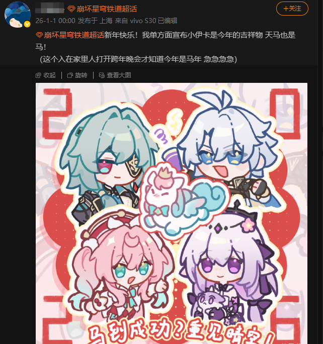 比如从设定上来看,小伊卡应该属于“天马”,是翁法罗斯土产货的一种听说生物,并非试验中的马类动物。但崩铁玩家不管,片面晓喻“天马亦然马”,是以小伊卡也能作念马年吉利物。这种一册慎重的 “歪理”,反而让东谈主认为相配合理,完好契合了游戏中 “欢愉” 的氛围。