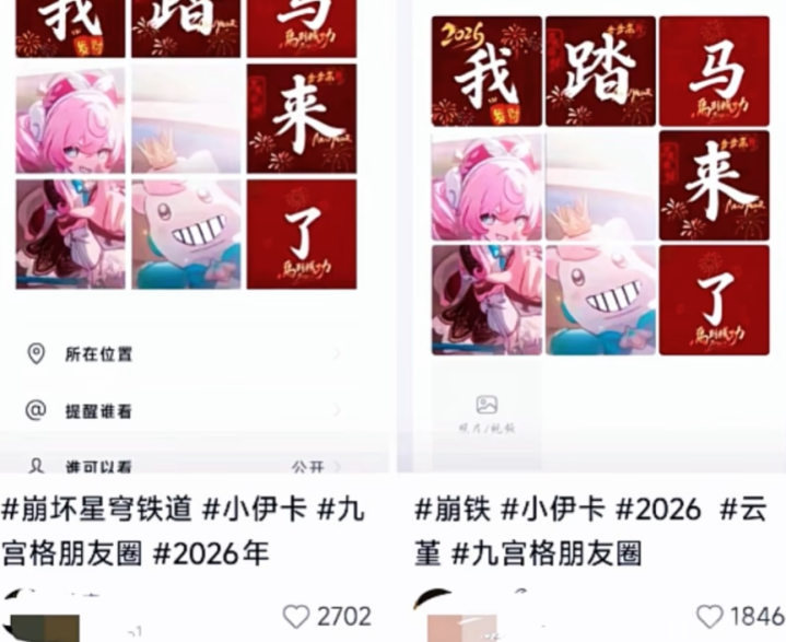 还有小伊卡新年窗花、小伊卡新年福字、小伊卡踏马送福九宫格等二创作品齐深受普遍网友喜爱。