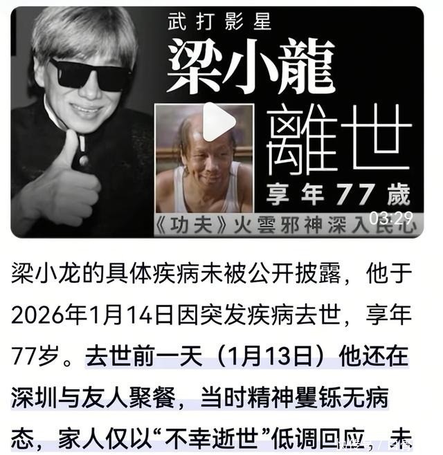2026年1月14日开yun体育官网入口登录体育,一个据说透顶斥逐了。77岁的梁小龙在深圳倏得离世,享年77岁。