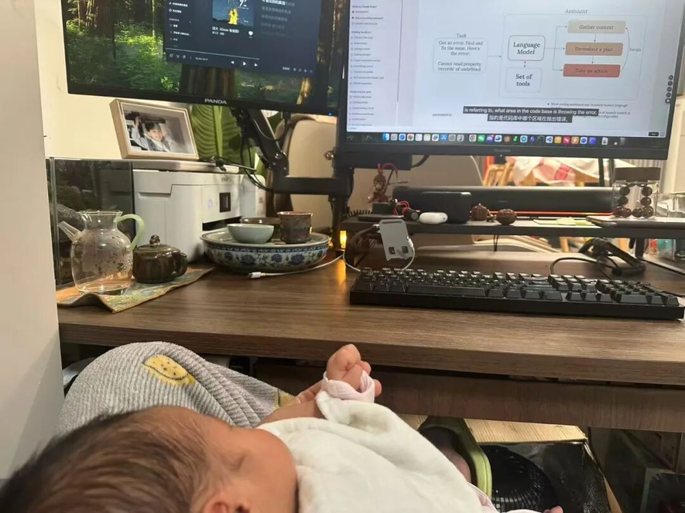 图|陈铭一边哄二宝寝息,一边学习AI学问