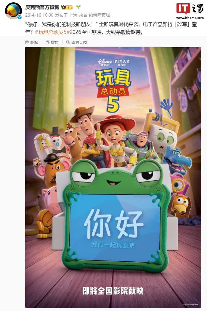 7、电子居品或将「改写」童年?皮克斯动画电影《玩物总动员 5》证据引进内地,档期待定皮克斯官方微博 4 月 16 日秘书,动画电影《玩物总动员 5》2026 宇宙献映。这标明本片证据引进内地,但档期待定。字据官方预热案牍来看,本片将真切探讨电子居品对孩子们童年的影响。