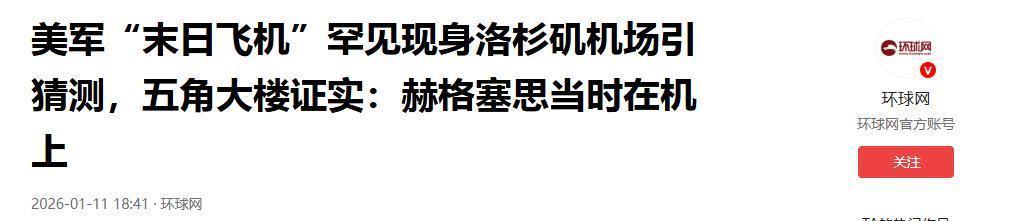 2026-01-11 18:41·环球网 好意思军“末日飞机”隐衷现身洛杉矶机场引算计,五角大楼阐述:赫格塞念念那时在机上